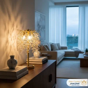 گوشه مطالعه: یک آباژور با نور متمرکز و قابل تنظیم در کنار یک صندلی راحتی، کنج مطالعه‌ای دنج و کاربردی برای شما می‌سازد.
