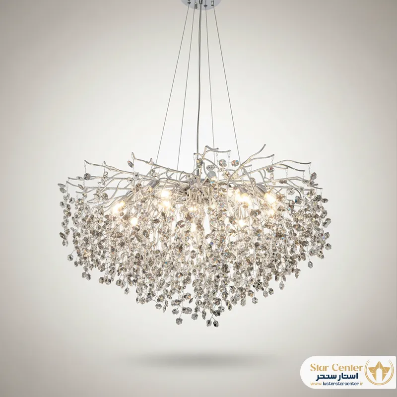 این لوستر درختی با آویزهای کریستالی، با الهام از زیبایی و آرامش طبیعت طراحی شده و در ابعاد مختلف (۴۵، ۶۰، ۸۰ و ۱۰۰ سانتیمتر) عرضه میشود تا شما بتوانید آن را بهراحتی با اندازه فضای خود تطبیق دهید. طراحی نئوکلاسیک این مدل همراه با آویزهای کریستالی درخشان، جلوهای لوکس، هنری و چشمنواز به هر محیطی میبخشد و آن را به یک نقطه کانونی بیبدیل تبدیل میکند.