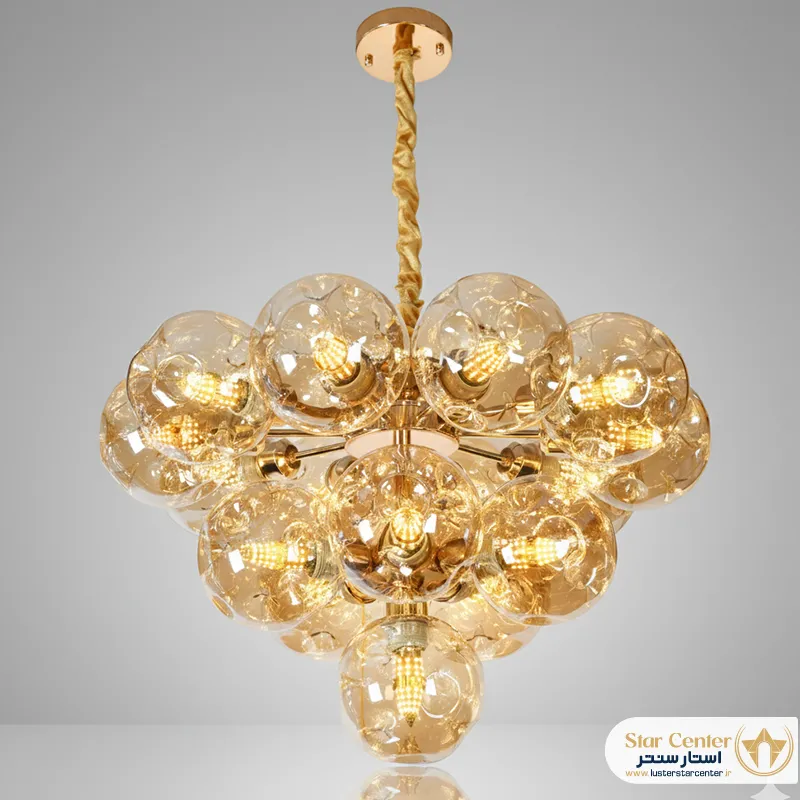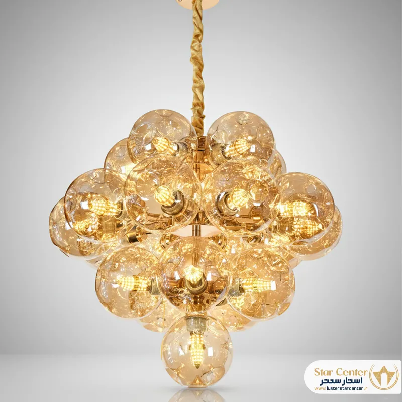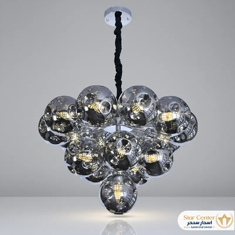 - طراحی “الهامگرفته از ساختار مولکولی” به چه معناست؟این طراحی به چیدمان شاخهها و حبابهای شیشهای اشاره دارد که شبیه به نحوه اتصال اتمها در یک ساختار مولکولی است. این فرم پویا و غیرخطی، به لوستر ظاهری ارگانیک، هنری و بسیار مدرن میبخشد.