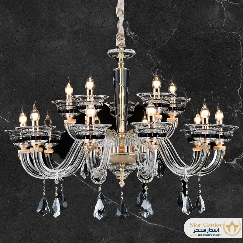 - منظور از “تمام کریستال” بودن بدنه چیست؟در این مدل، برخلاف بسیاری از لوسترها که بدنهای فلزی با آویزهای کریستال دارند، شاخهها و ستون اصلی خود لوستر نیز از کریستال یکپارچه و تراشخورده ساخته شده است که باعث بازتاب نور حداکثری و جلوهای بسیار لوکستر میشود.