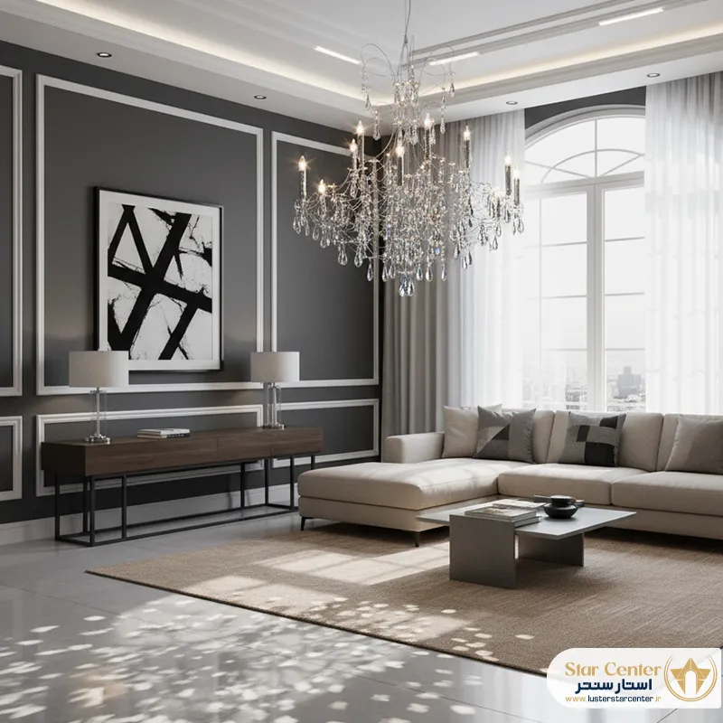 لوستر پست مدرن کریستال نوا: مجسمه‌ای از نور و فلز