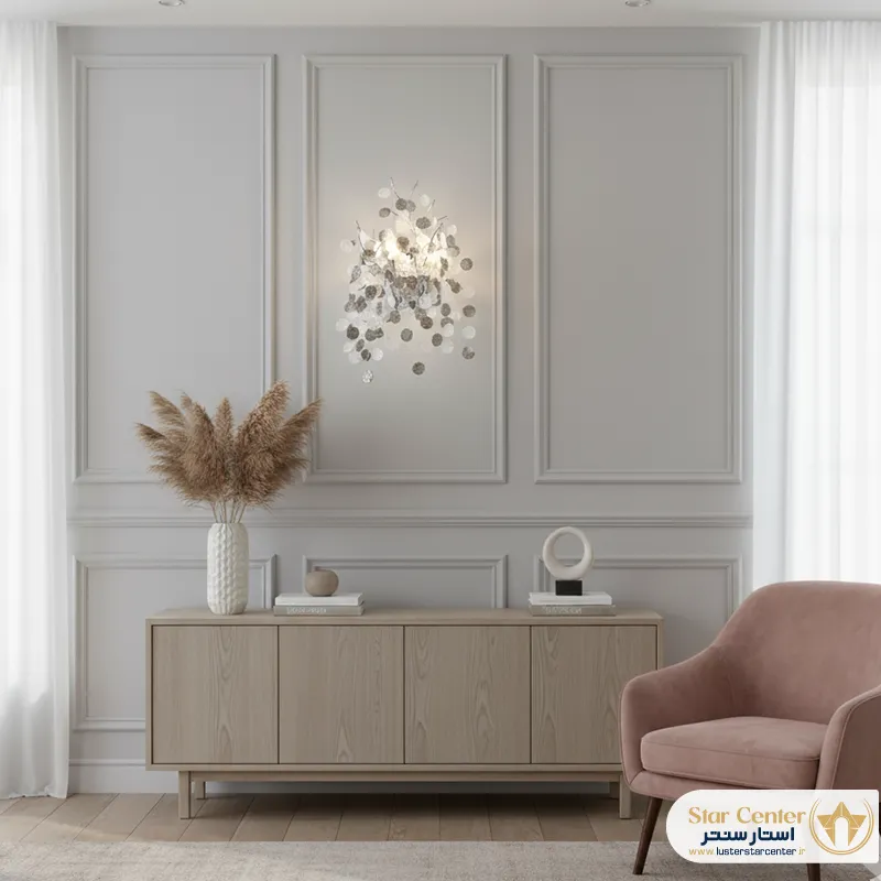 دیوارکوب درختی نئوکلاسیک رزلون (Roselune)، یک اثر هنری درخشان از برند صنایع روشنایی استار است که زیبایی طبیعت را با شکوه طراحی نئوکلاسیک در هم می‌آمیزد. این چراغ دیوارکوب با طراحی خاص و آویزهای کریستالی، نور را به شکلی رؤیایی پخش کرده و به هر فضایی، از راهرو و ورودی گرفته تا اتاق خواب و پذیرایی، هویتی منحصربه‌فرد می‌بخشد.