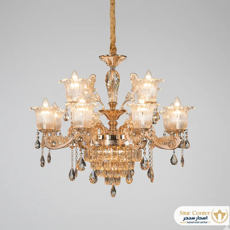 • مدل ۱۲ شاخه: بهترین گزینه برای سالن‌های پذیرایی بزرگ، لابی‌ها و فضاهایی با سقف بلند که به یک لوستر سقفی باشکوه نیاز دارند.